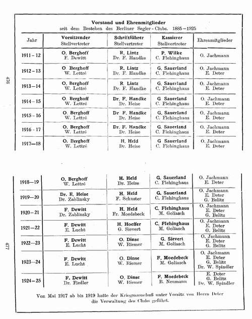 Auszug aus Vorstandliste 1910 bis 1925